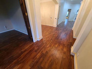 Have kids and pets? Vinyl flooring is a great option for peace of mind. Available in authentic wood looks, 100% waterproof vinyl performance brands like NuCore®, NuCore® Performance, DuraLux® and OptiMax™ fit the bill. They’re scratch and stain resistant with a rigid core for superior strength to withstand whatever life throws their way. Turn to laminate for water protection and other daily wear and tear. AquaGuard® Performance is a waterproof, wood-based laminate that looks and feels like authentic hardwood. You can install it in any room because of its premium waterproof protection. Its durability rating is the highest laminate offers, so those pet nails will have some serious competition. HydroShield® is another quality laminate option with 24-hour water protection, a protective coating and a lifetime residential warranty.